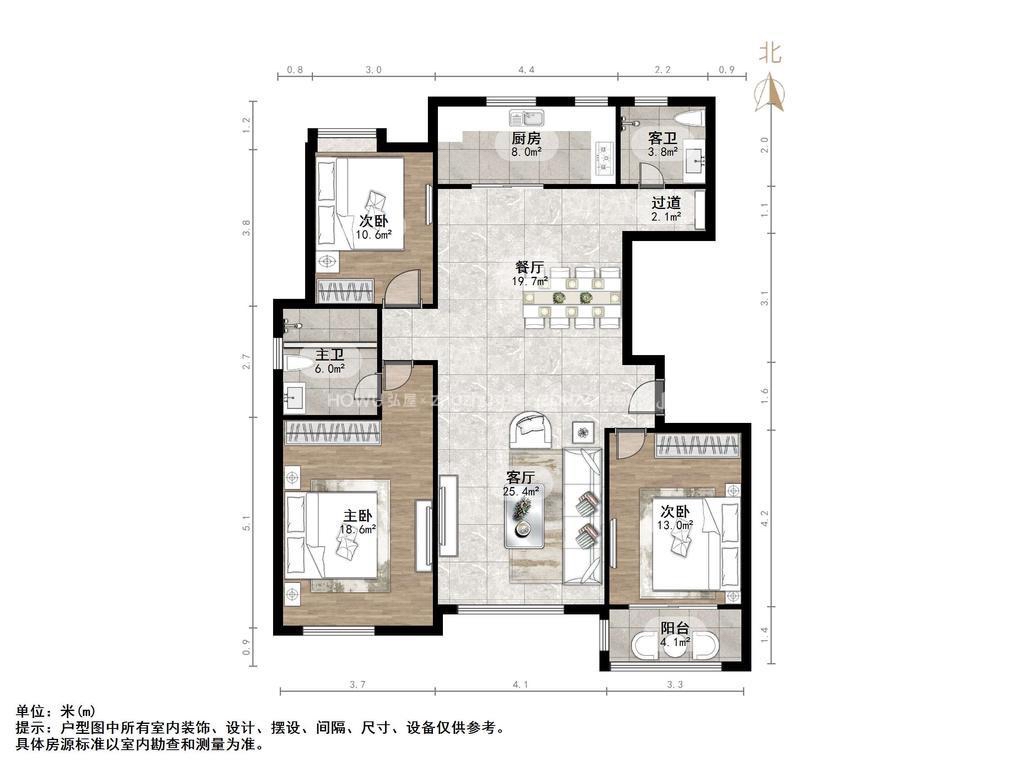 厅室3室2厅2卫1阳台