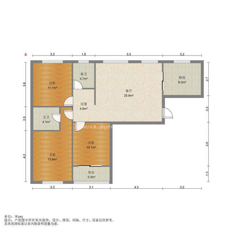 厅室3室2厅2卫0阳台