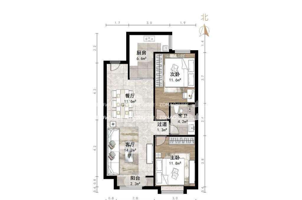 厅室2室2厅1卫1阳台