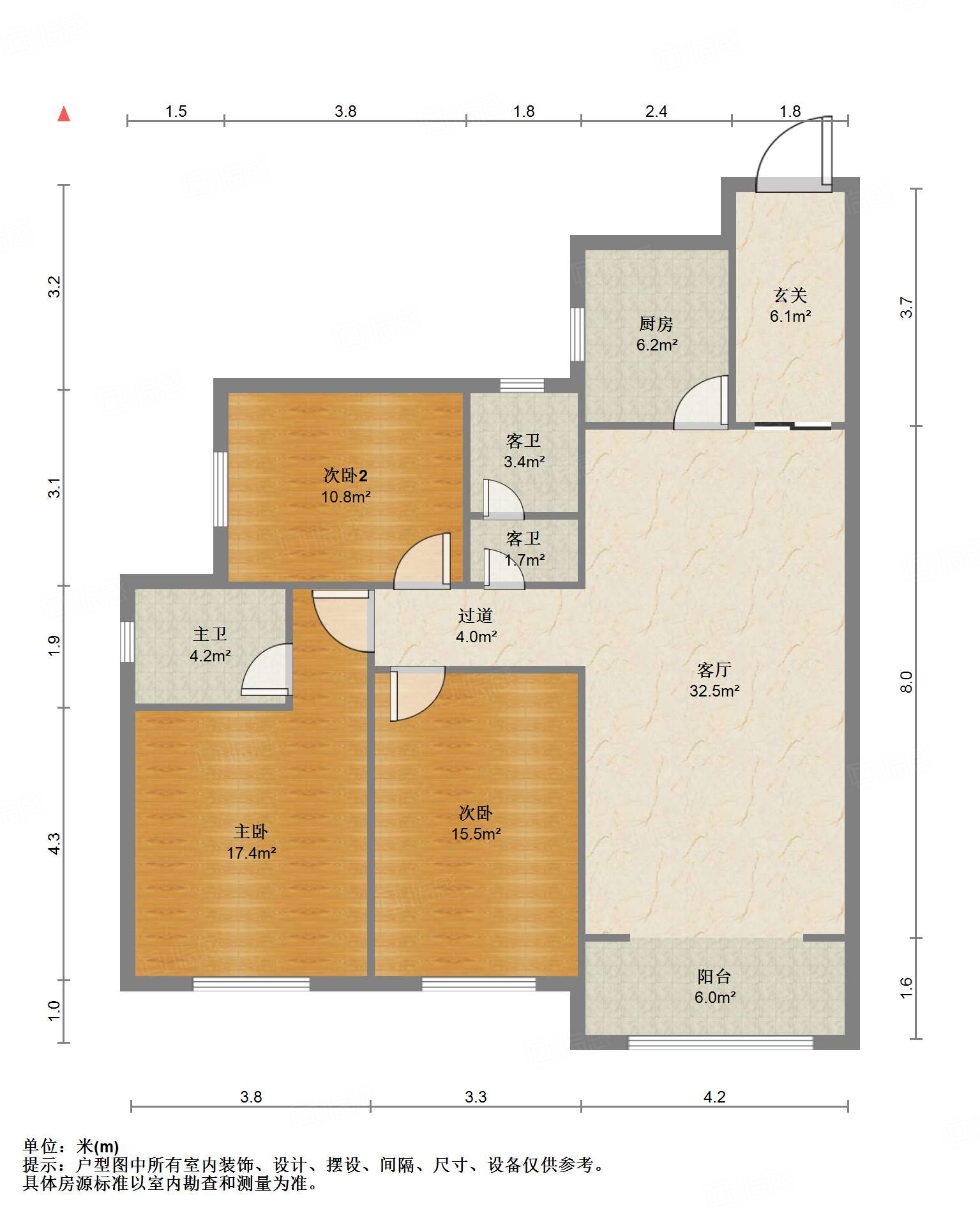 厅室3室2厅2卫2阳台