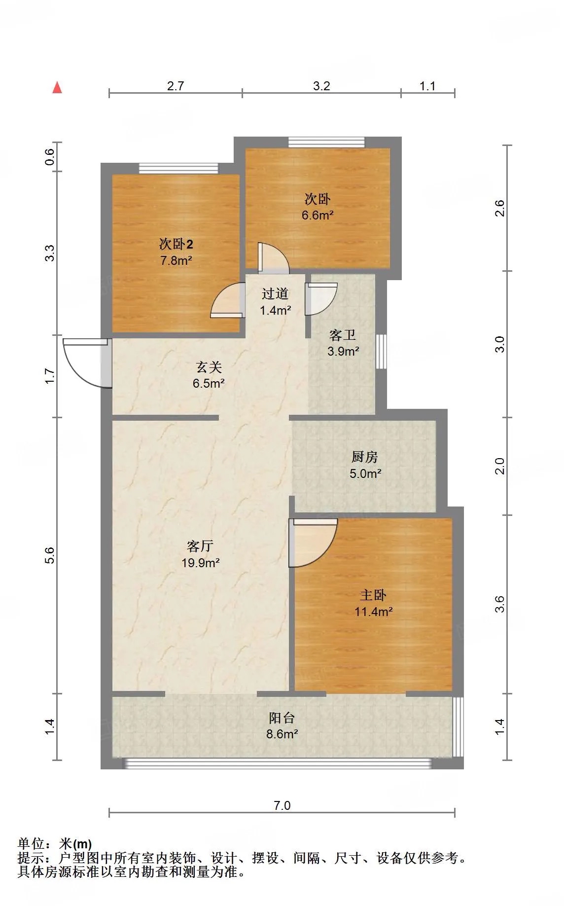 厅室3室2厅1卫1阳台