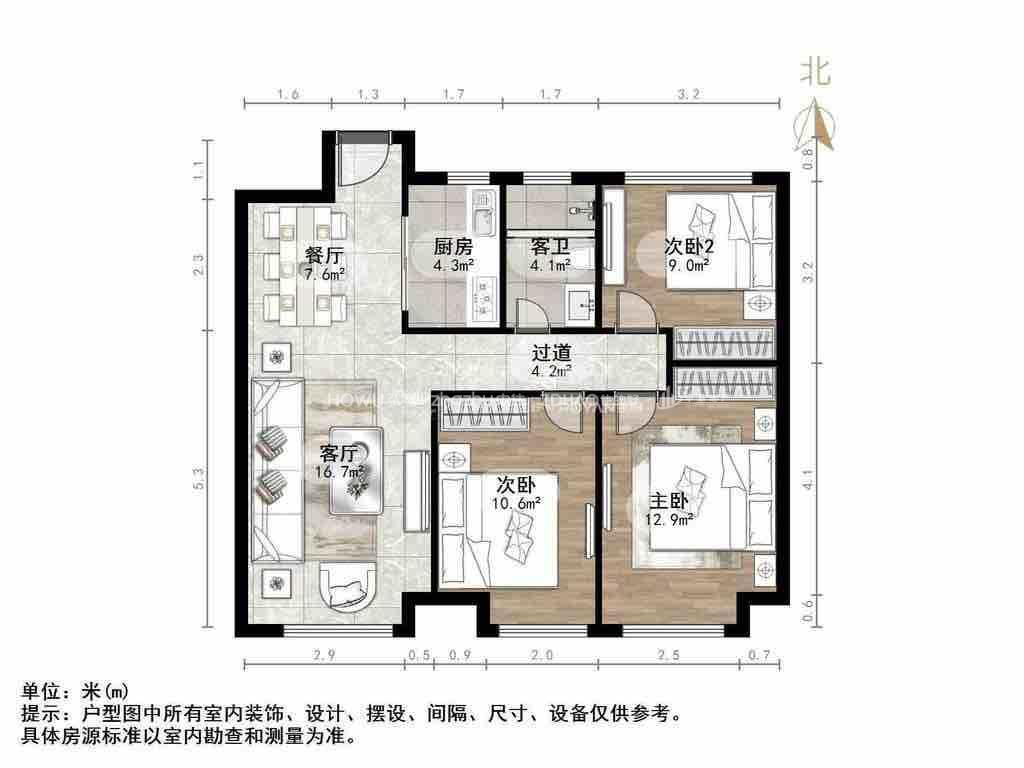 朝向南北 建筑面积93㎡