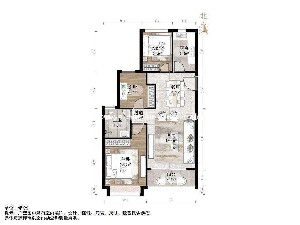 朝向南北 建筑面积99.4㎡