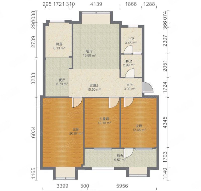 厅室3室2厅1卫1阳台
