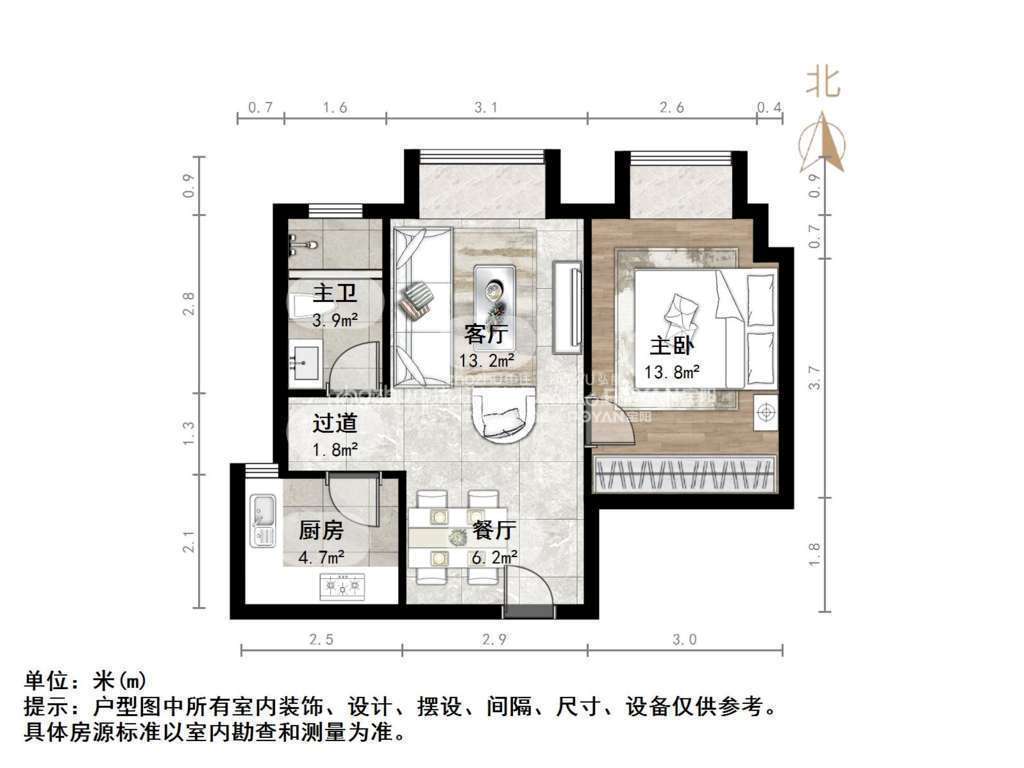 朝向南北 建筑面积60㎡