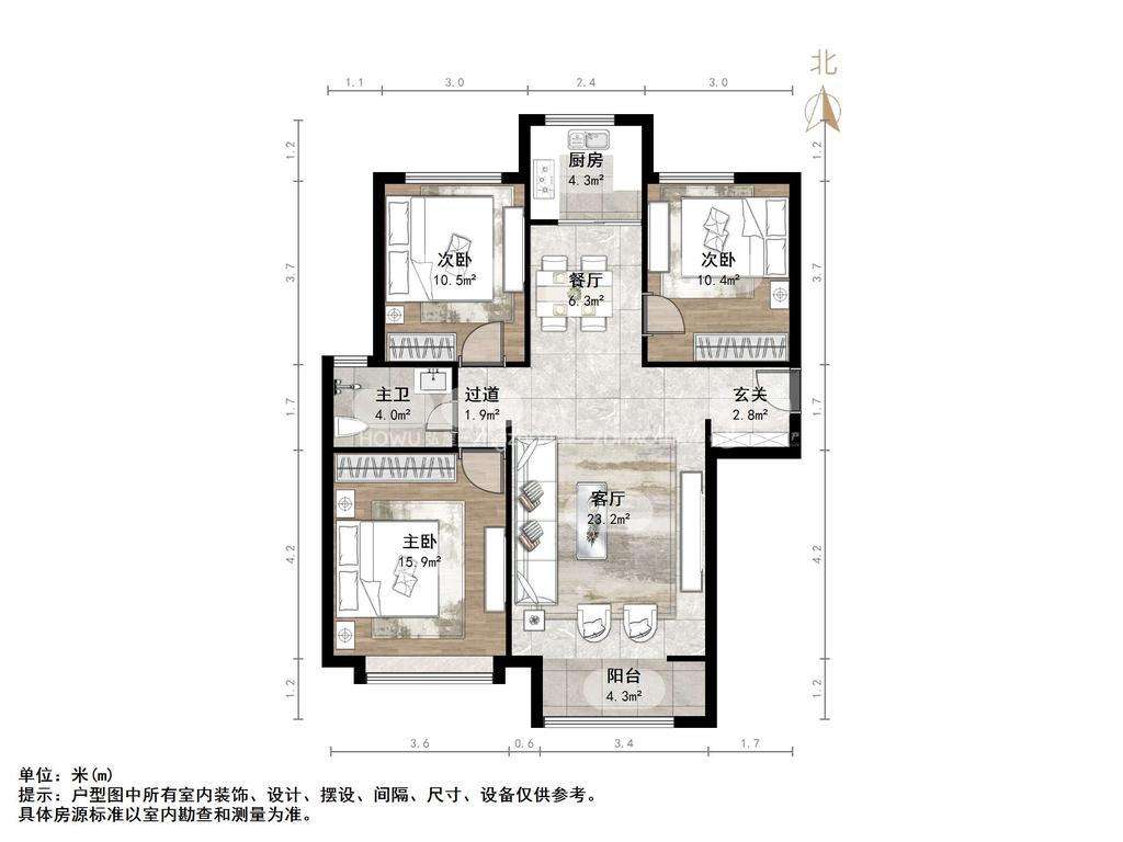 厅室3室2厅1卫1阳台