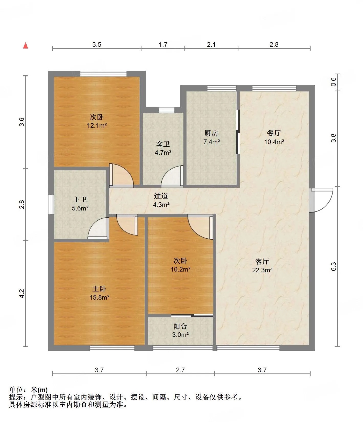 厅室3室2厅2卫1阳台