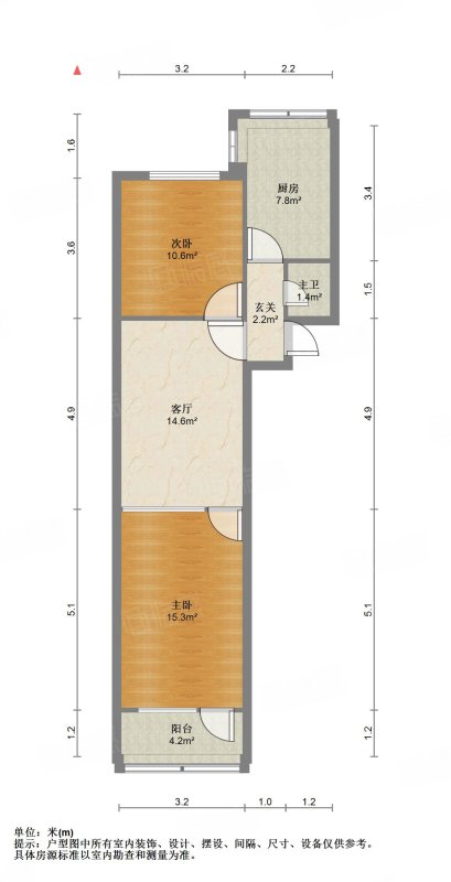厅室2室1厅1卫1阳台