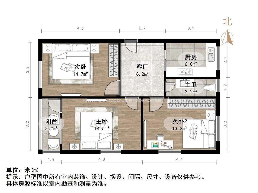 厅室3室1厅1卫1阳台