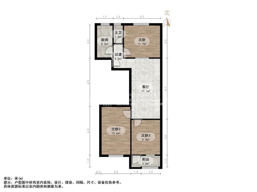 厅室3室1厅1卫1阳台