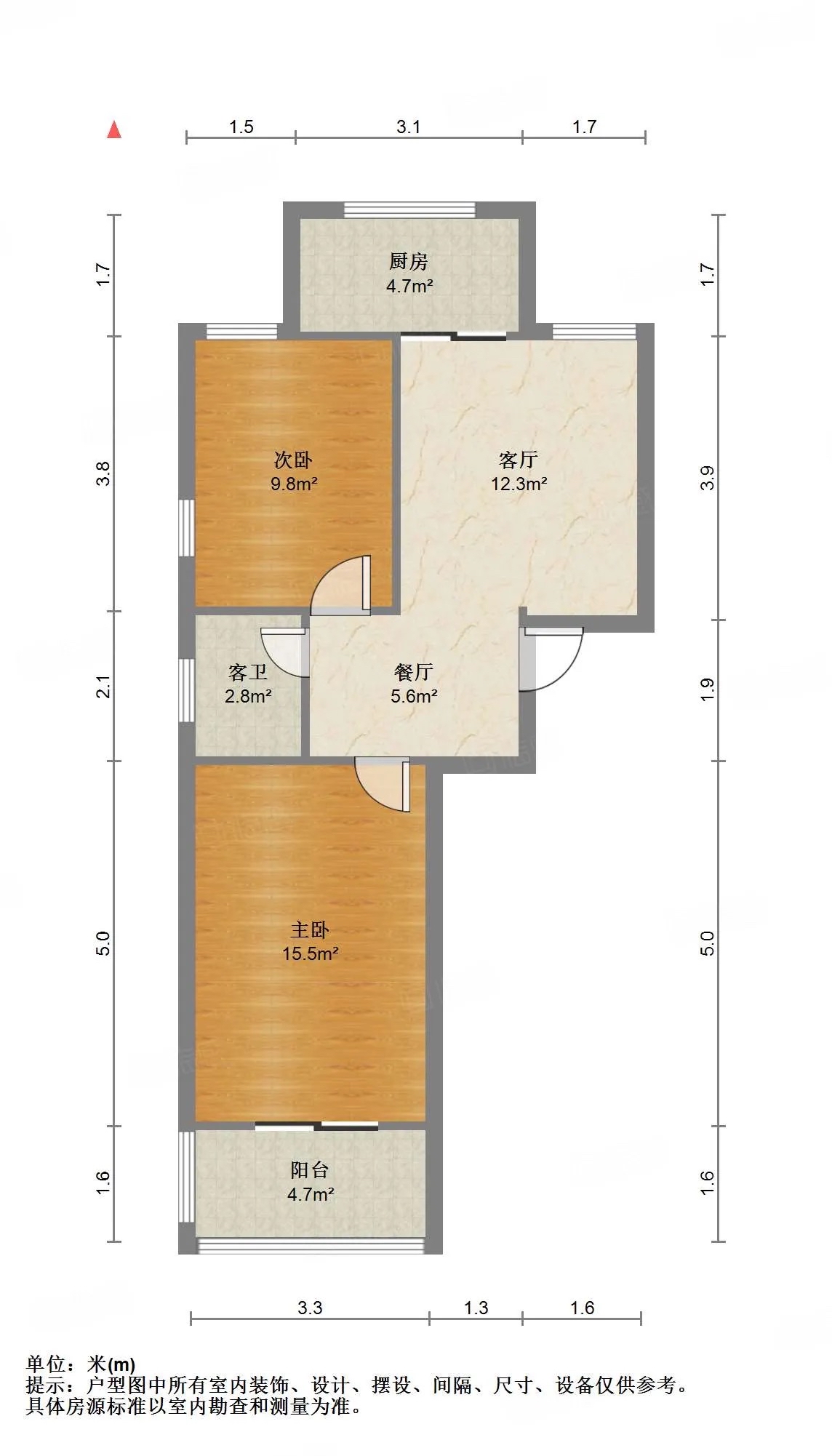 厅室2室1厅1卫1阳台