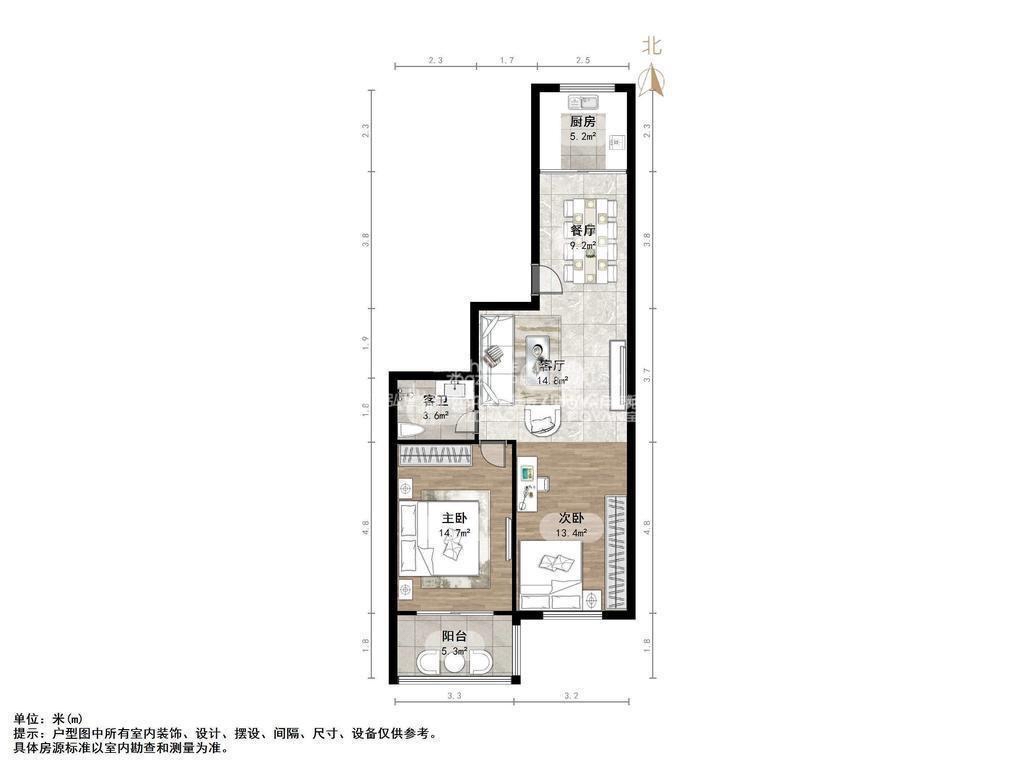 厅室2室2厅1卫1阳台