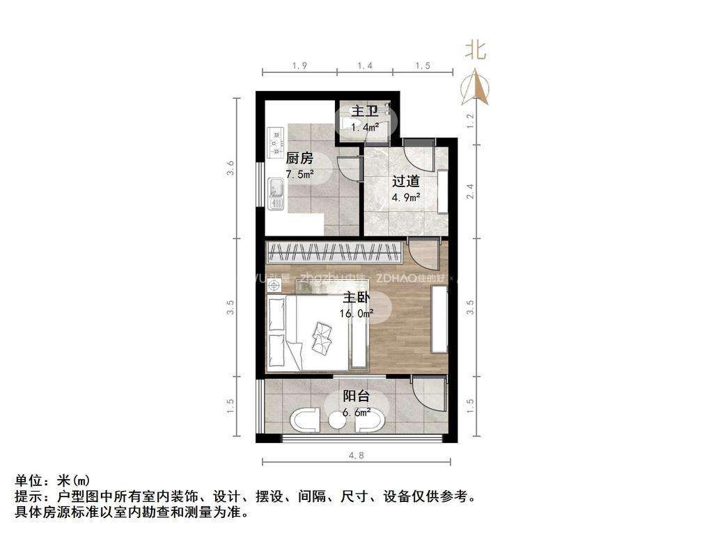 厅室1室1厅1卫1阳台