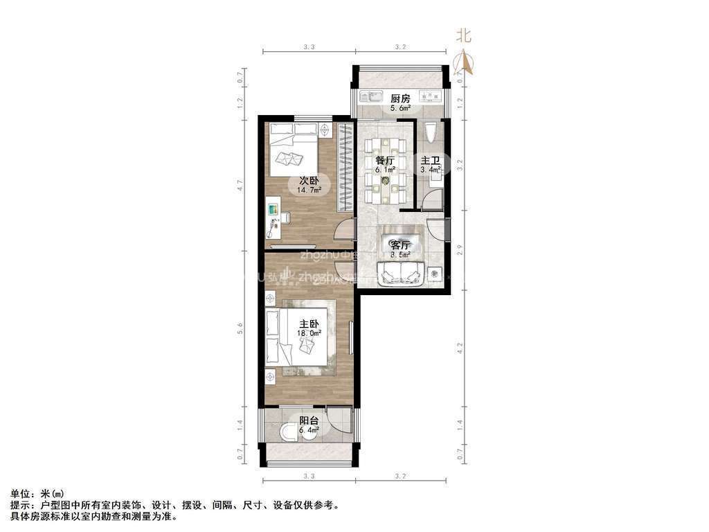 朝向南北 建筑面积72.85㎡