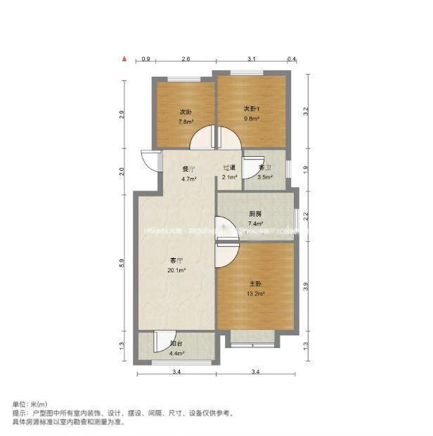 朝向南 建筑面积98㎡
