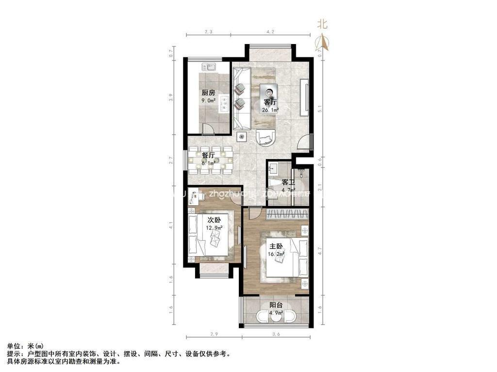 朝向南北 建筑面积91㎡