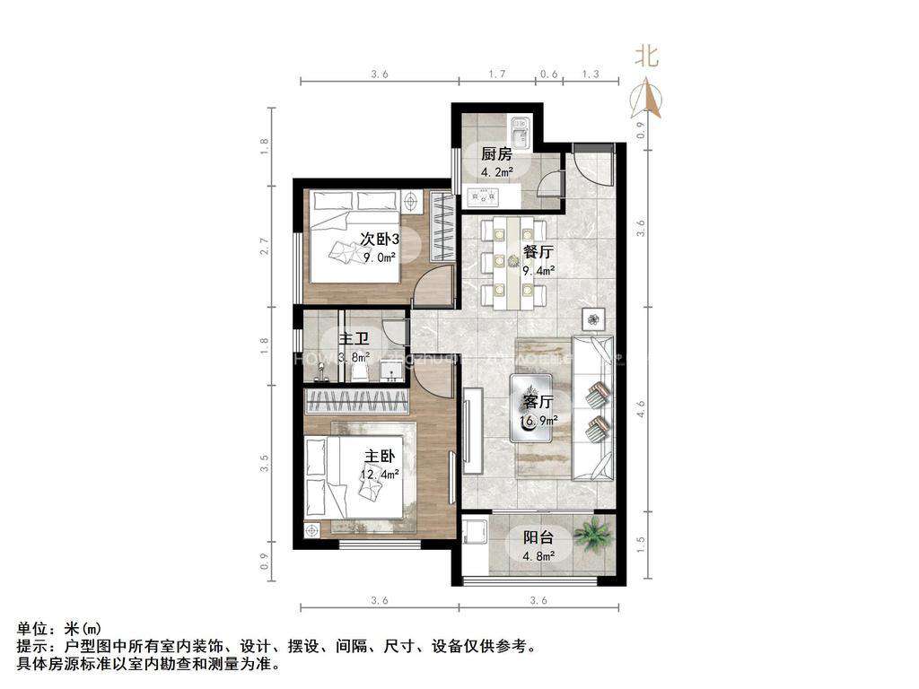 朝向南 建筑面积56㎡