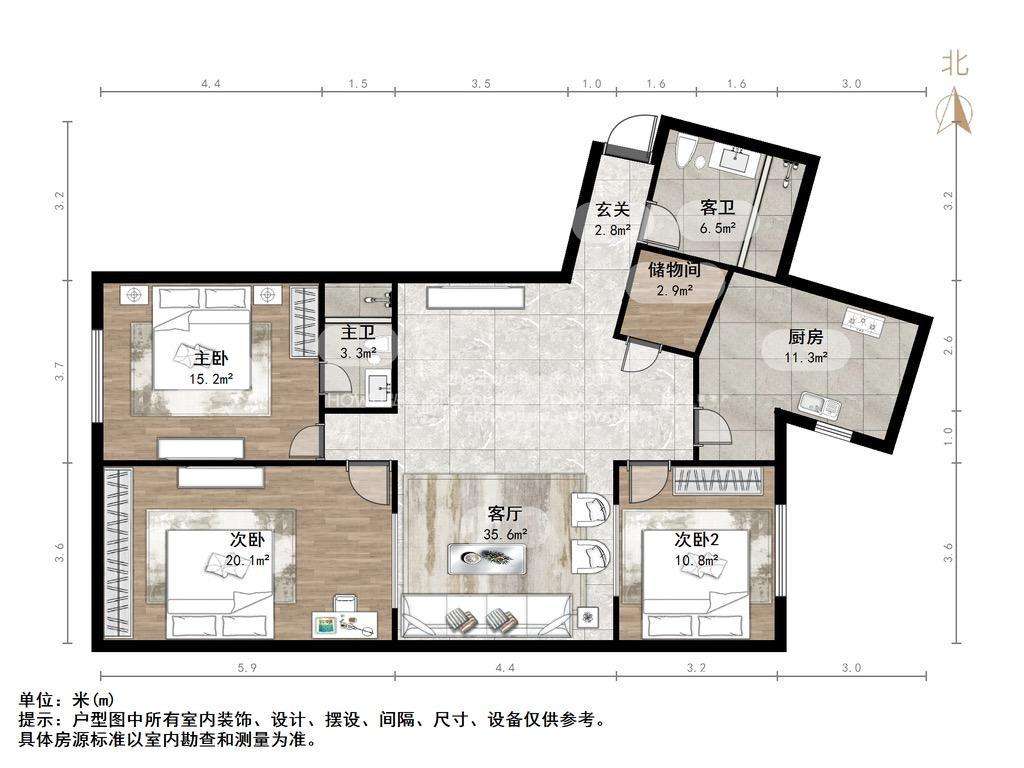 朝向南北 建筑面积126㎡