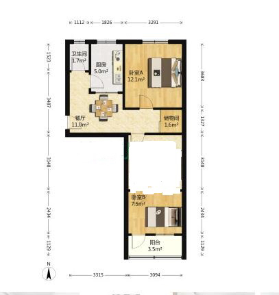 厅室2室1厅1卫1阳台