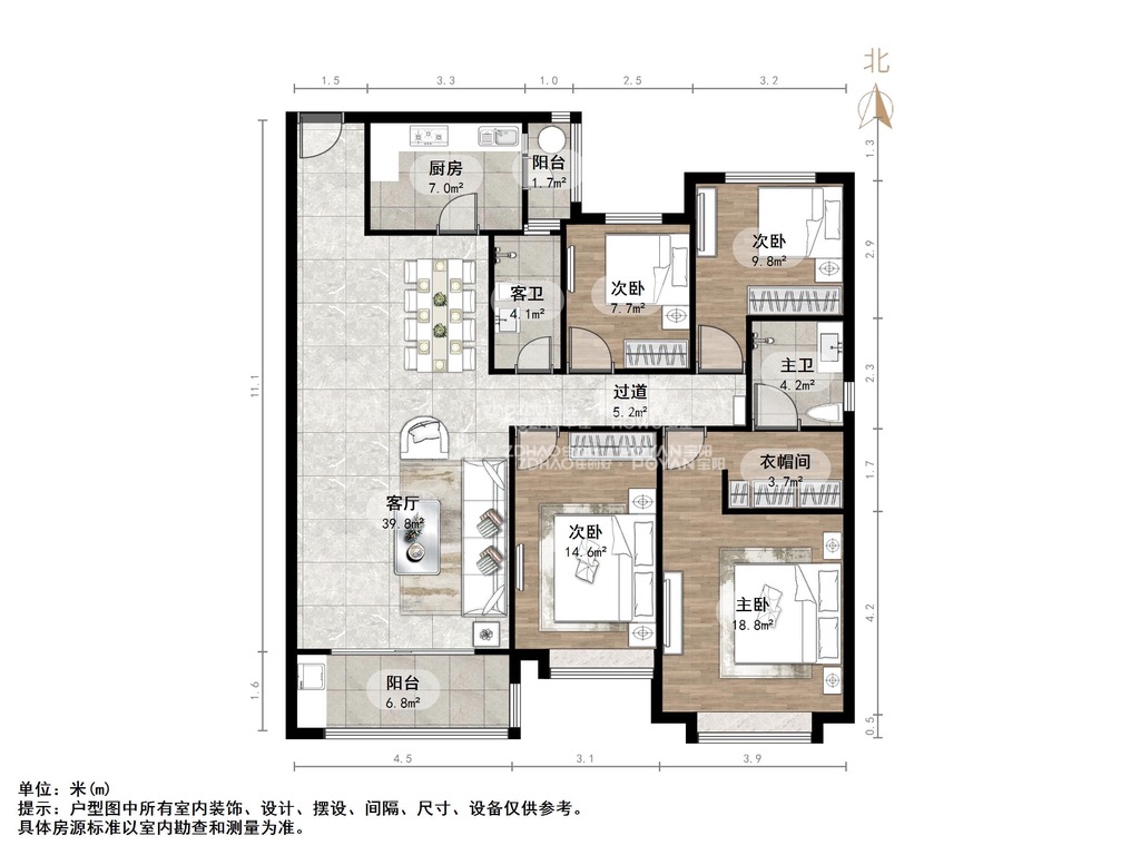 朝向南北 建筑面积154㎡