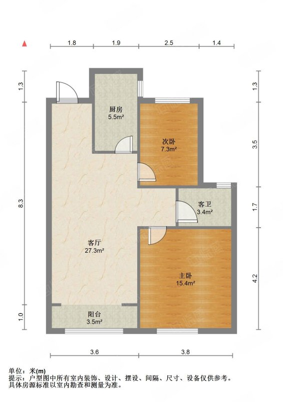 朝向南北 建筑面积84.8㎡