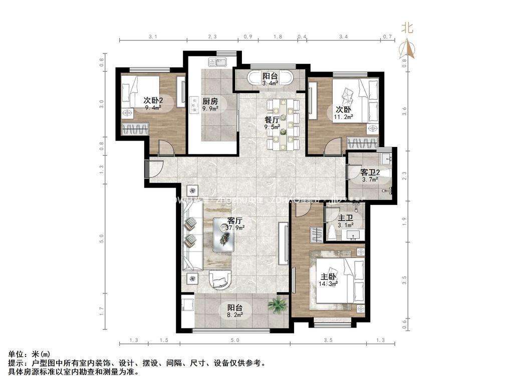 朝向南北 建筑面积153.51㎡