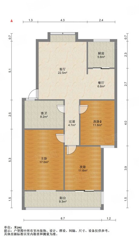 厅室3室2厅1卫1阳台