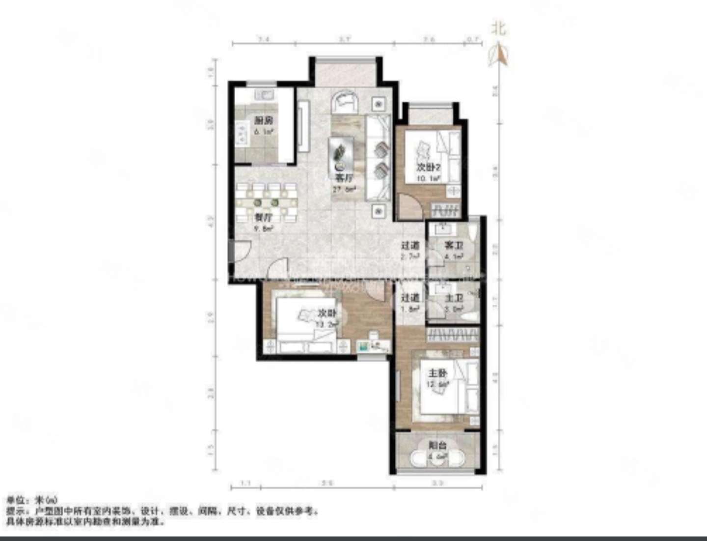 厅室3室2厅2卫1阳台