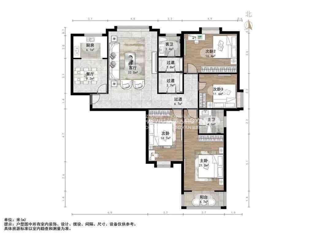 厅室4室2厅2卫1阳台