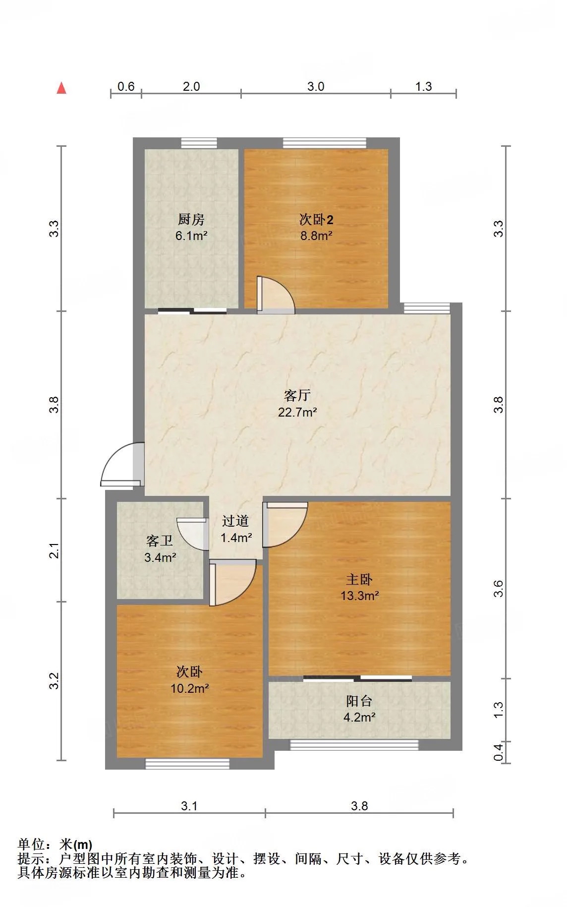 厅室3室2厅1卫1阳台
