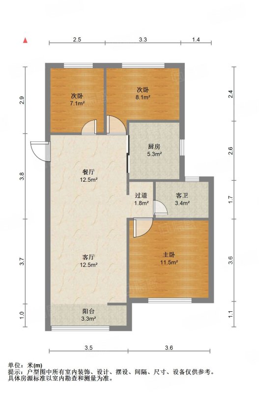 厅室3室2厅1卫0阳台