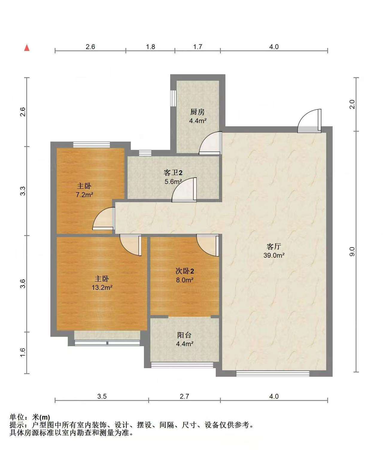 厅室3室2厅1卫2阳台