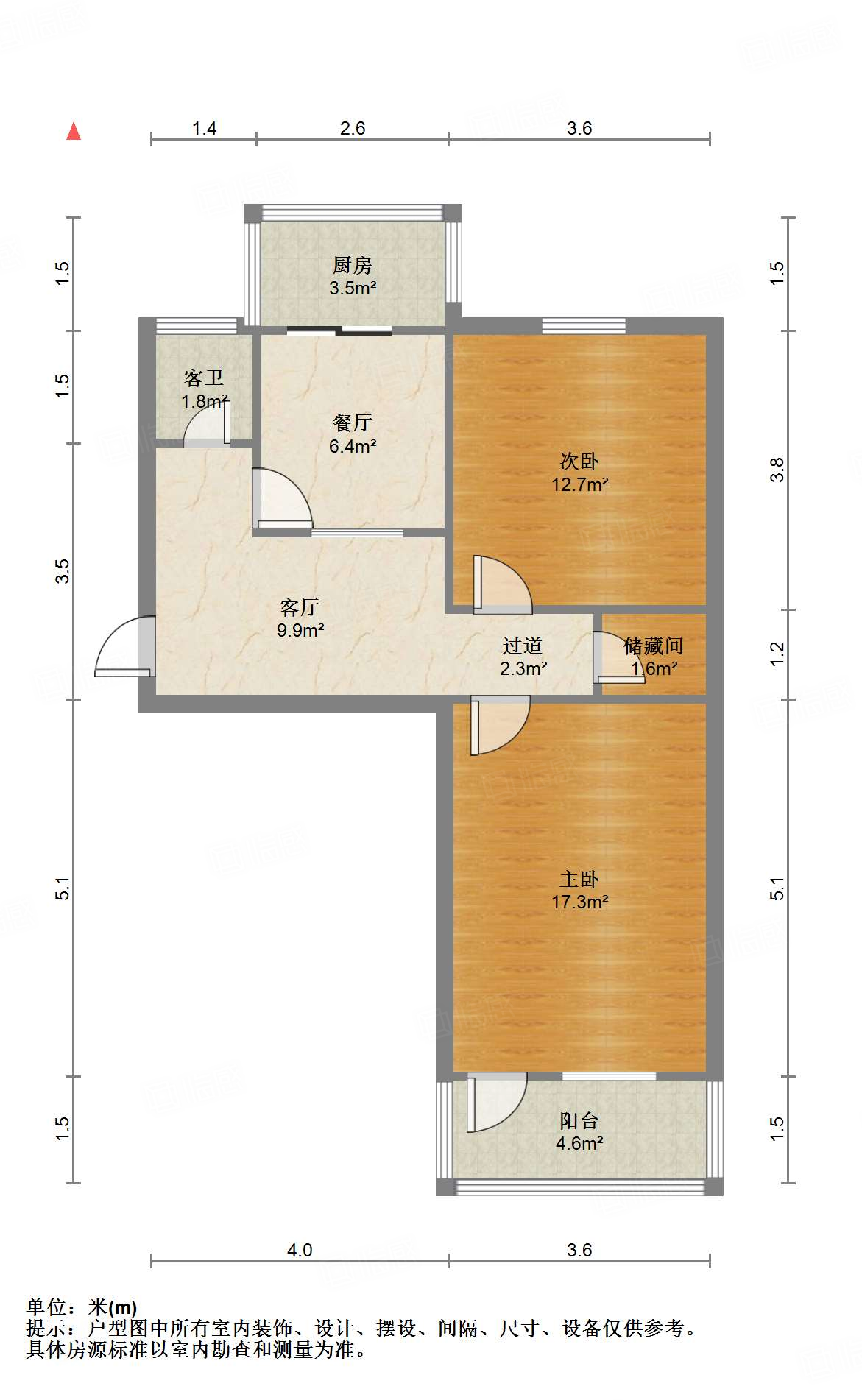 厅室2室1厅1卫1阳台