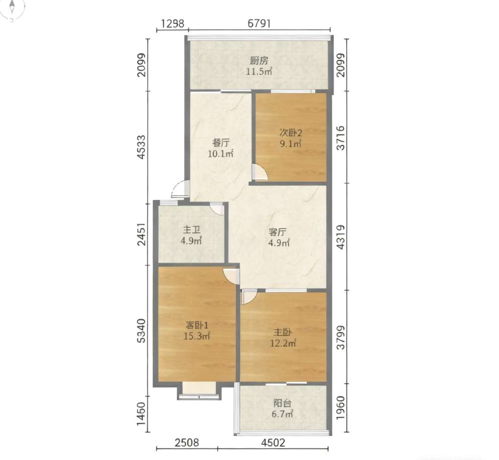 厅室3室2厅1卫0阳台
