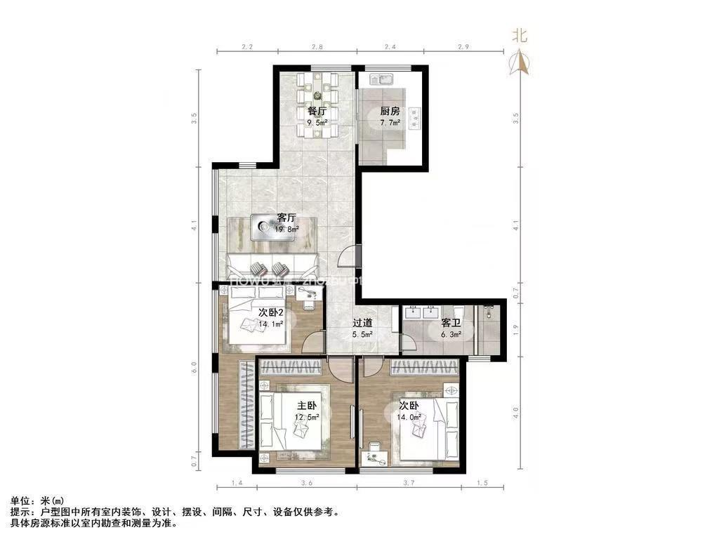 朝向南北 建筑面积120.8㎡