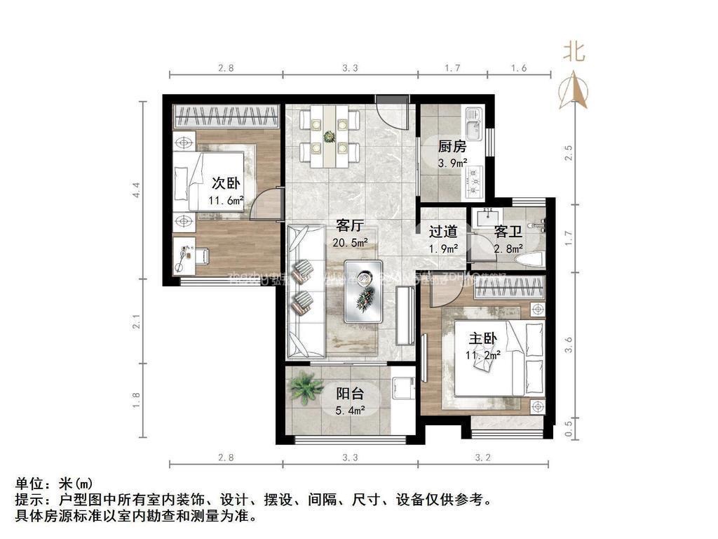 朝向南北 建筑面积83㎡