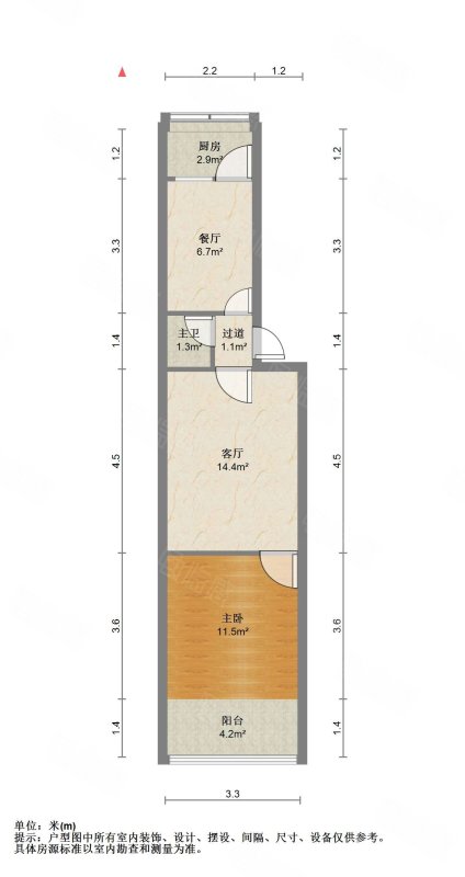 厅室1室1厅1卫1阳台