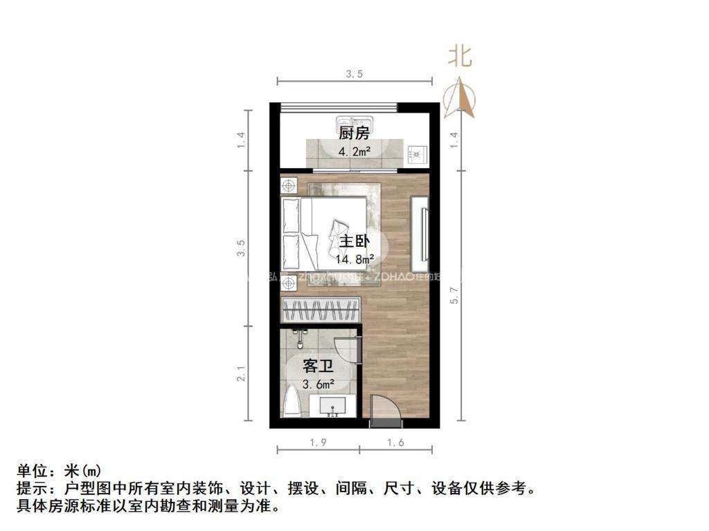 朝向南北 建筑面积33㎡