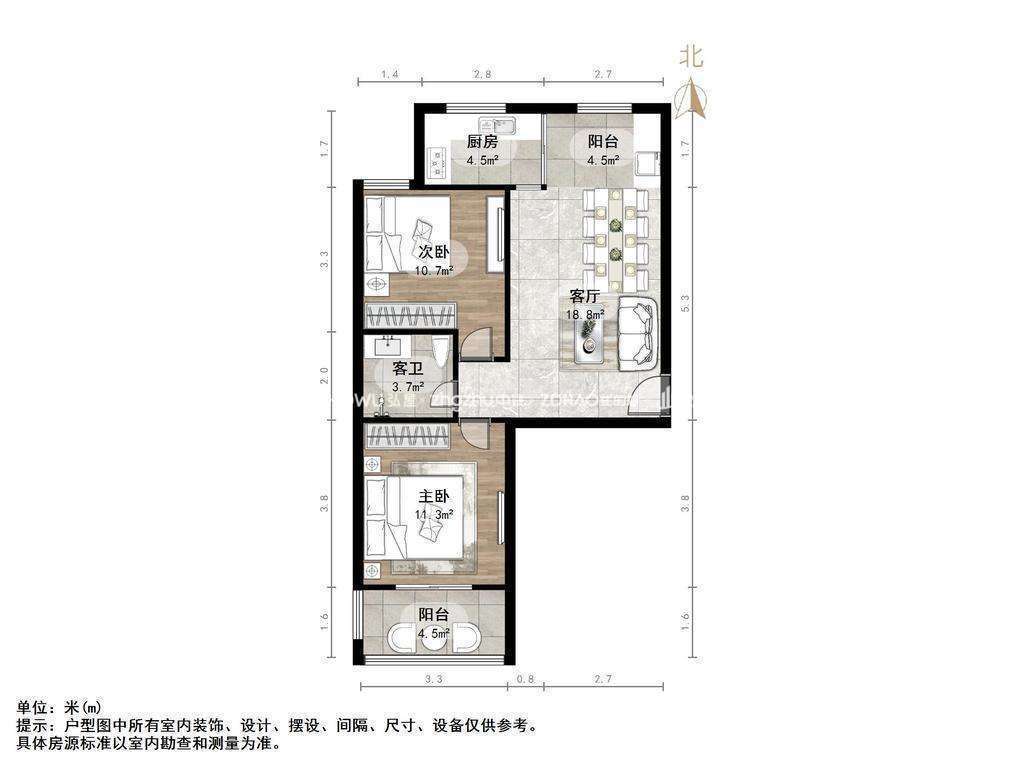 厅室2室1厅1卫1阳台