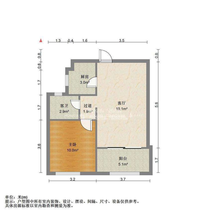 厅室1室1厅1卫1阳台