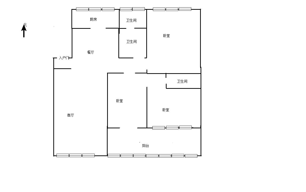 厅室3室2厅1卫1阳台