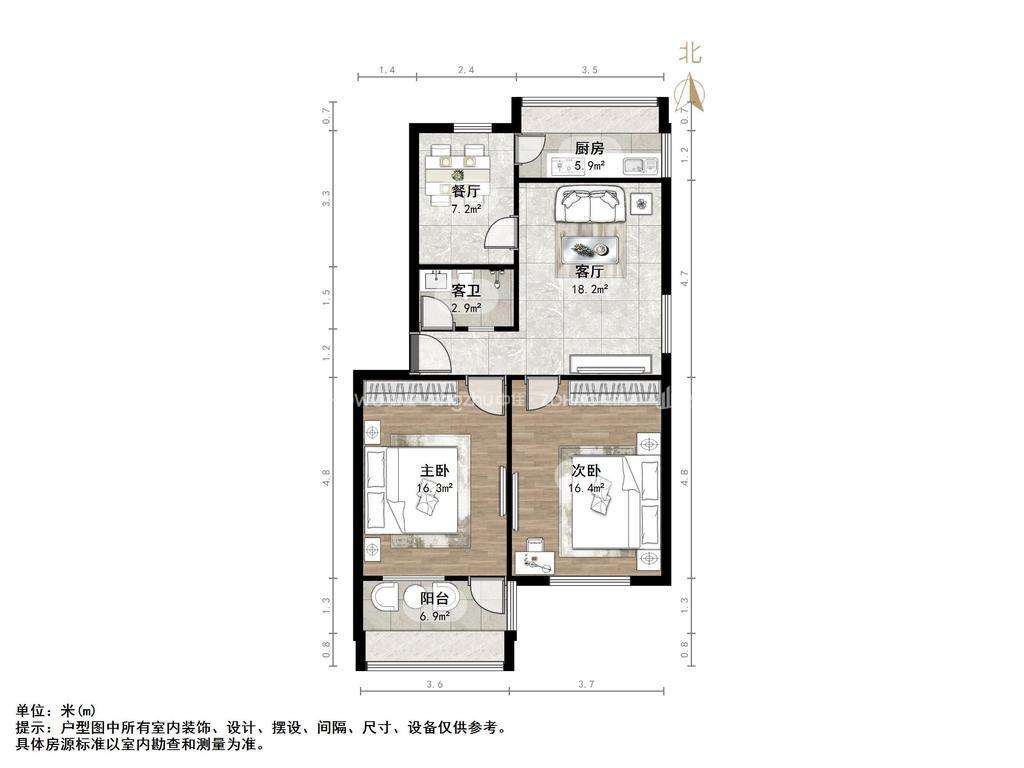 厅室2室1厅1卫1阳台