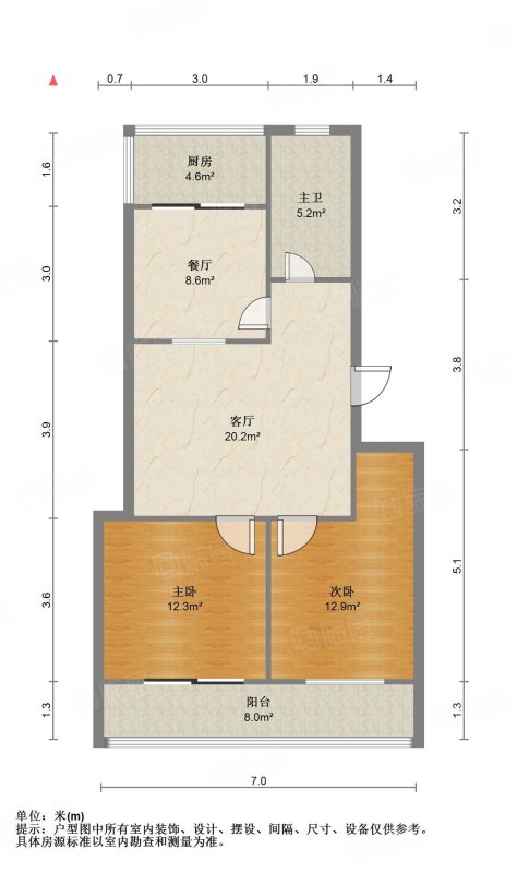 厅室2室2厅1卫1阳台