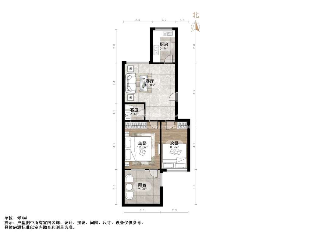 厅室2室1厅1卫1阳台