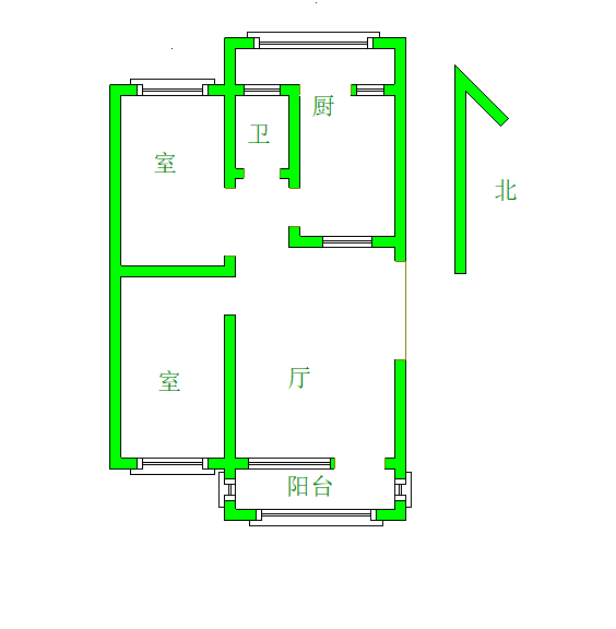 厅室2室1厅1卫2阳台