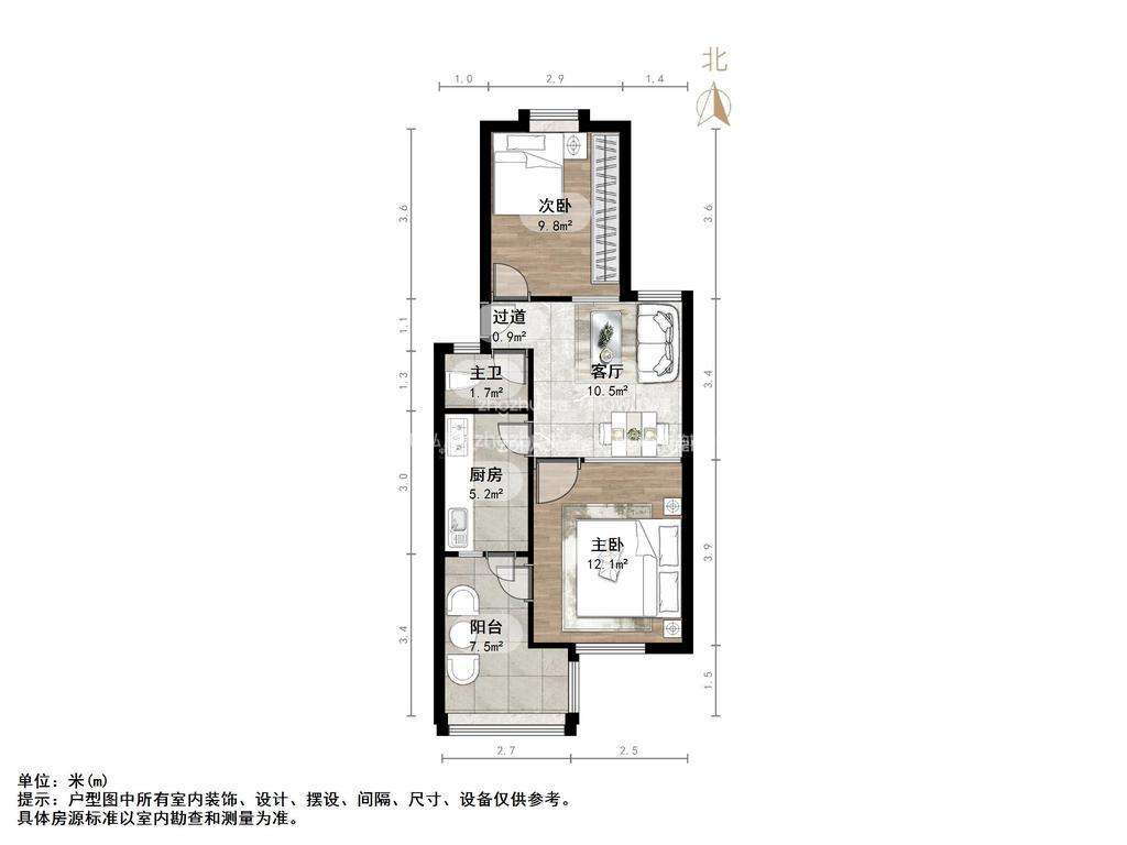 厅室2室1厅1卫1阳台