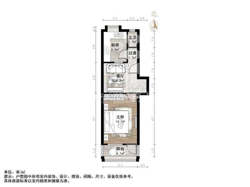 朝向南北 建筑面积54㎡