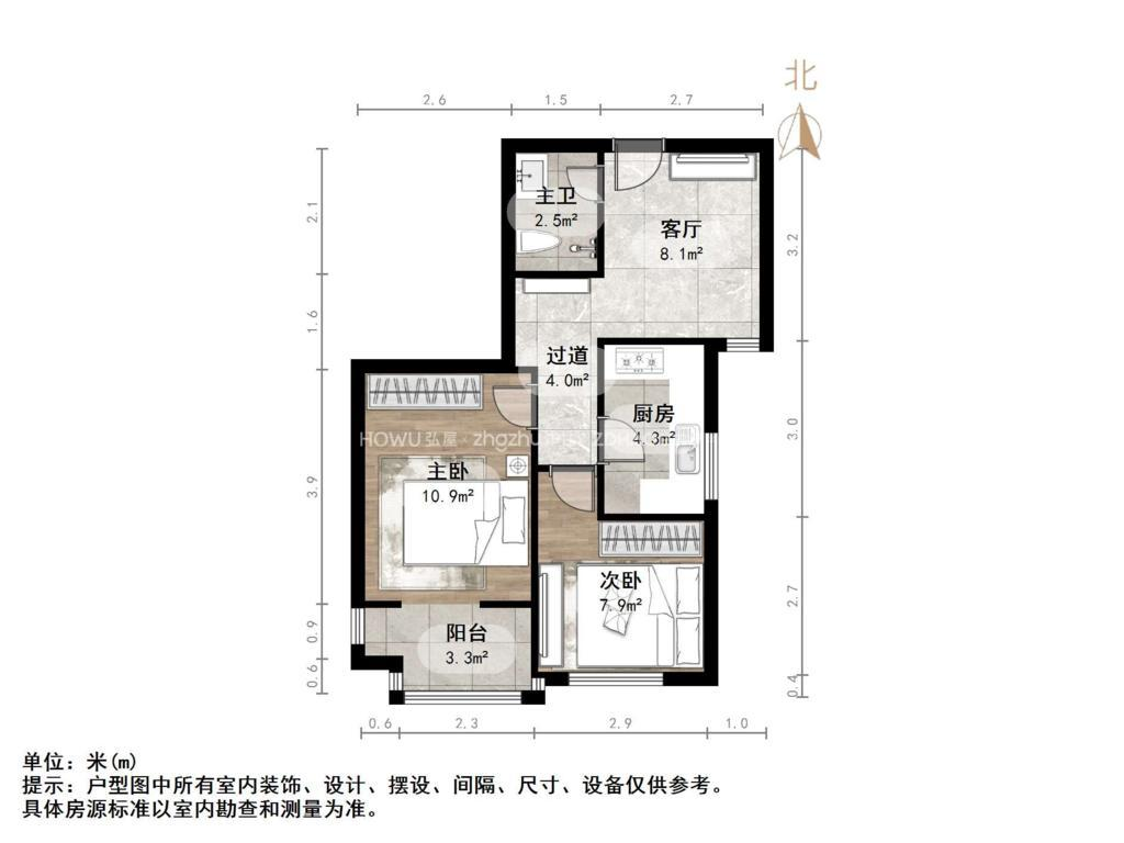 厅室2室1厅1卫1阳台