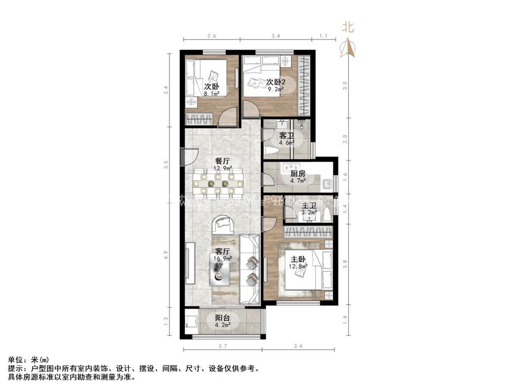 朝向南北 建筑面积118㎡