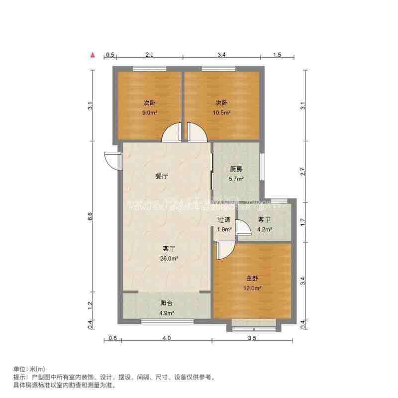 厅室3室1厅1卫1阳台